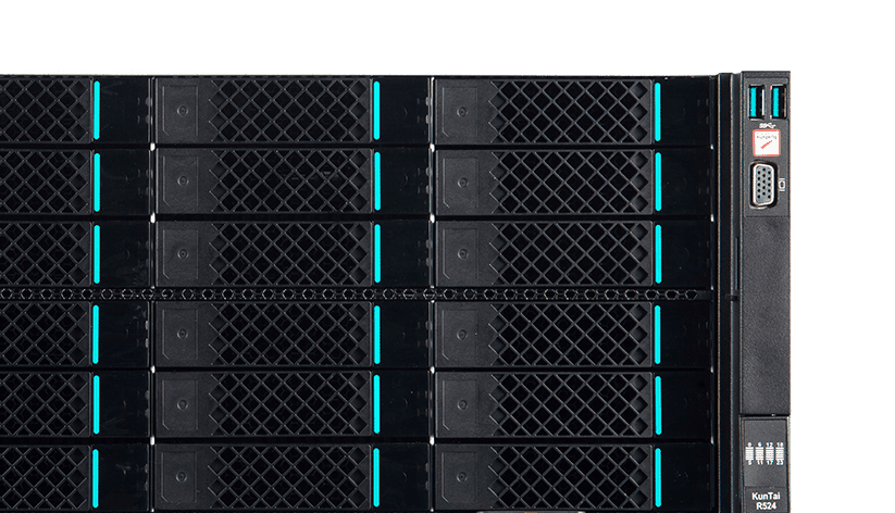 KunTai R524 存储型服务器是菠菜导航数码基于鲲鹏处理器推出的新一代 ARM数据中心服务器。。。主要面向存储业务,,,,具有海量存储、、、高性能、、、低功耗以及易扩展的特点,,,适合为大数据分析、、、、软件定义存 储等应用场景的工作负载进行髙效加速。。。